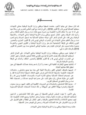 بلاغ التنسيقية الوطنية لحاملي الشهادات بوزارة التربية الوطنية حول محطاتها النضالية