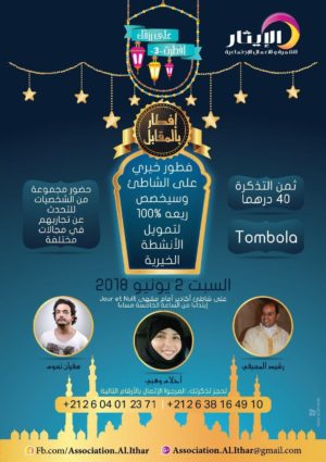 بشرائك للتذكرة وحضروك للنشاط كاتكون ساهمتي معانا بطريقة غير مباشرة في الأنشطة لي غادي تنظمها الجمعية سواء فهاد الشهر العظيم أو في الشهور المقبلة وبهذا غادي تكون خديتي أجر عظيم