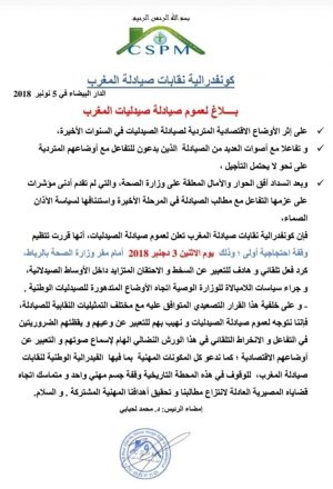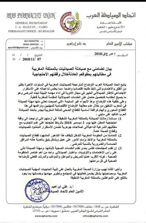 بيان تضامني من اتحاد ا لصيادلة العرب مع صيادلة المغرب في محنتهم: