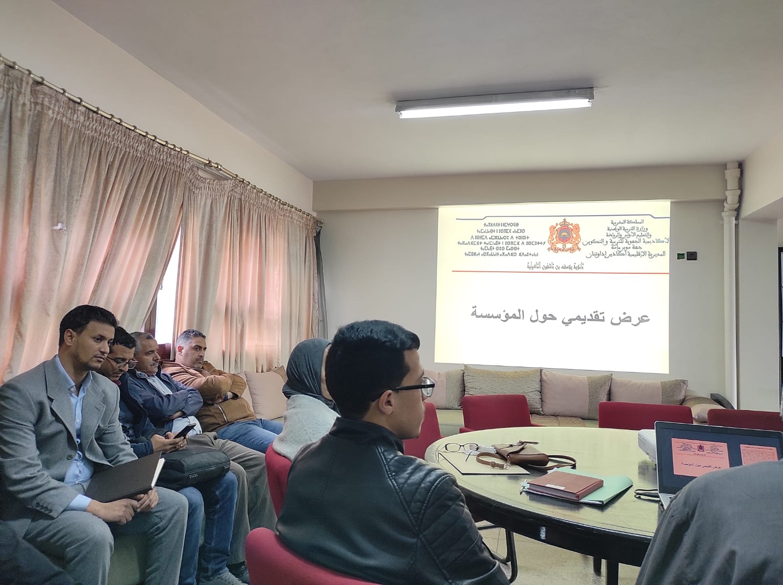أشرف المدير الاقليمي للتعليم زوال امس الثلاثاء على أشغال اللقاء التواصلي حول البنية المادية والتربوية ومشروع المؤسسة المندمج، بحضور ممثلي المجلس الجماعي لاكادير وبعض رؤساء المصالح واطر المديرية الاقليمية واعضاء جمعية امهات واباء واولياء التلاميذ بالمؤسسة وئيسة الفرع الاقليمي لفدرالية جمعيات امهات واباء واولياء التلاميذ بالمغرب الى جانب الاطر الادارية بالثانوية.