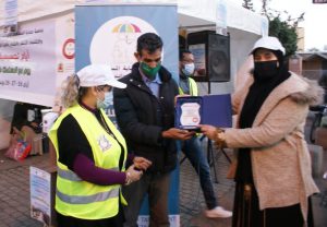 وشهد الحملة التحسيسية توزيع حوالي 500 كمامة مع قياس الحرارة وتقديم وسائل التعقيم للمارة. كما استهدفت الحملة تحسيس التجار بإشهار الأثمان وبالمقابل تنبيه الساكنة إلى أهمية تفحص مدة صلاحية المنتوجات المستهلكة بمختلف أصنافها تفادياً للأضرار السلبية على سلامة صحتهم.