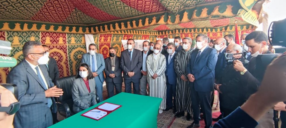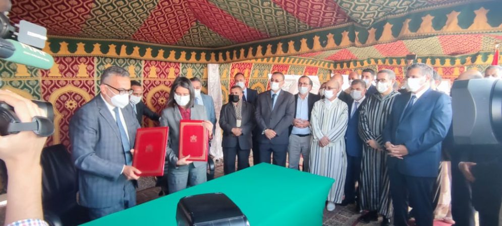 أزول بريس – أشرف وفد وزاري مكون من السيد عزيز اخنوش وزير الفلاحة والصيد البحري والتنمية القروية والمياه والغابات، والسيدة نادية فتاح وزيرة السياحة و الصناعة التقليدية و النقل الجوي و الاقتصاد الاجتماعي، رفقة السيد الوالي و السيد العامل و السادة البرلمانيون، بحضور منتخبين ورؤساء المصالح المركزية والاقليمية، وفعاليات مدنية، اليوم الجمعة 09 ابريل، بإقليم تيزنيت ، على تقديم مشروع بناء قرية الفخارين بتيزنيت « Village des potiers»، بمبلغ مالي يقدر بـ 15 مليون درهم، و بمكونات تستجيب لأهداف تثمين سلسلة الفخار بالمدينة والإقليم، وتضم قرية الفخارين، ورشات حرفية للإنتاج ، فضاءات للشرح و للعرض و التسويق.