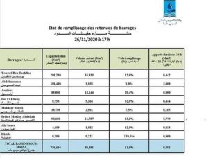 وبهذا يكون مخزون المياه بالسد قد سجّل ارتفاع بنسبة ما يناهز 35.5 مليون متر مكعب لتصل نسبة ملء السد الى 11.9% تضيف نفس المصادر.