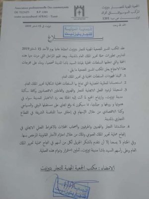 عن مكتب الجمعية المهنية للتجار بتيزنيت.