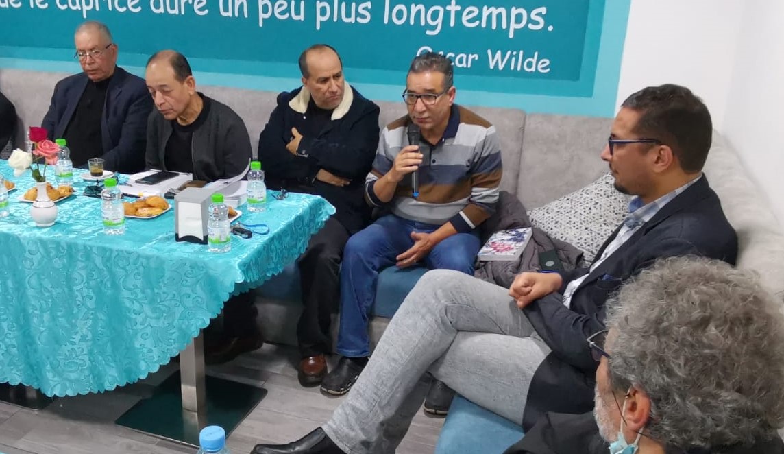 وفي مستهل تقديمه للندوة الفكرية رحب الأستاذ إبراهيم أمجاد بالحضور على تلبية ” نداء الثقافة تجمعنا ” في مواجهة الفراغ العصيب الذي خلفه انتشار وباء كورونا. كما تقدم بالشكر للمديرية الجهوية” قطاع الثقافة” لدعم اللقاء كما شكر المقهى كبريس على احتضانها هذا العرس الثقافي. و في نفس السياق أثنى على الفاعل الثقافي حسن بن عمر صاحب المقهى المذكور، والذي جعل فضاء المقهى الثقافي قبلة لرواد الثقافة والفن من أجل المساهمة في ثورة ثقافية ناضجة ومد جسور التواصل الثقافي والاجتماعي بين المثقفين والفنانين.