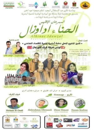 بمناسبة ذكرى عيد الاستقلال المجيد، تنظم جمعية امود الخير بتنسيق مع تعاونية تليلا وبشراكة مع المبادرة الوطنية للتنمية البشرية وعمالة وبلدية تارودانت ، المهرجان الاقليمي “الحناء اداوزال” في نسخته الثالثة تحت شعار ” تثمين المنتوج المحلي دعامة اساسية لتنمية الاقتصاد التضامني، بين الفترة الممتدة من 30 نونبر و 1 و 2 من دجنبر 2018 بتارودانت .