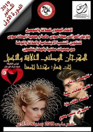 ينظم باكادير في شهر مارس 2019،المهرجان الوطني للحلاقة والتجميل في دورته الاولى تحت شعار:مهنتنا تجمعنا .مع عدة تنشطة بالمناسبة: تكريم فعاليات مهنية،تكوينات و ورشات ،اكتشاف طاقات شابة،التنقيب عن منتخب جهوي للمشاركة في التظاهرات الوطنية والدولية مع ضيفة الشرف تونس الشقيقة.
