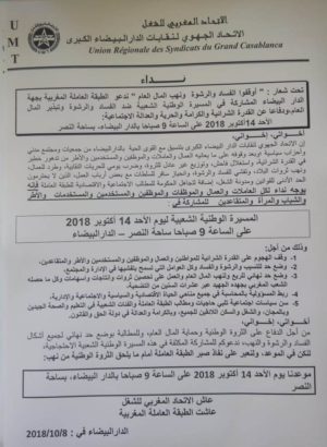 تنظيم مسيرة وطنية شعبية بساحة النصر بالدار البيضاء يوم الاحد 14 اكتوبر 2018