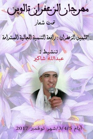 ينظم بتالوين منطقة الزعفران مهرجان الزعفران تحت شعار: تثمين الزعفران: رافعةالتنمية المجالية المستدامة من 3 الى 5 نونبر 2017 ويضمن عدة انشطة مختلفة مع تكريمات مع معرض لاهم المنتوجات المجالية ويعرف المهرجان حضور عدد كبير من الزوار الذين يحجون للمدينة للاطلاع على مؤهلاتها السياحية والفلاحية واقتناء هذه المادة التي تستعمل في عدة استعمالات في المطعم والمستحضرات التجميلية