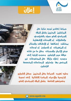 هذا هو بلاغ الجماعة الحضرية لاكادير حول احتلال الملك العمومي: