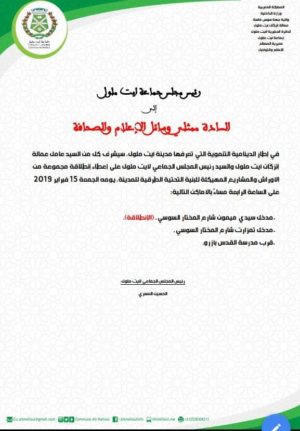 سيشرف عامل عمالة انزكان ايت ملول بمعية رئيس المجلس الجماعي على انطلاقة عدة مشاريع تنموية مهيكلة بايت ملول اليوم الجمعة 15 فبراير 2019 ابتداء من الساعة الرابعة زوالا.