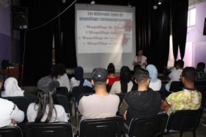 وتجاوب الشباب المشارك مع يسرى الكطيبة، مؤطرة الدورة، والتي حاولت خلال اللقاء منح خلاصات تجربتها في المجال للشباب بالمكياج التلفزيوني والسينمائي، والذي يعتبر أحد أهم العوامل في نجاح العديد من الاعمال التاريخية أو الفنتازية وحتى أعمال الدراما الوثائقية، من خلال التعرف على أحدث أساليب المكياج التلفزيوني السينمائي، و أفضل الطرق والممارسات في تنفيذ المكياج والخدع السينمائية، وذلك مرورا من مدخل نظري يحيط بمجموع المفاهيم والمصطلحات، قبل المرور إلى الجانب التطبيقي العملي. ويدخل النشاط ضمن مسار الأنشطة السنوية المتعددة للجمعية، والتي تتباين بين الثقافي والإجتماعي…