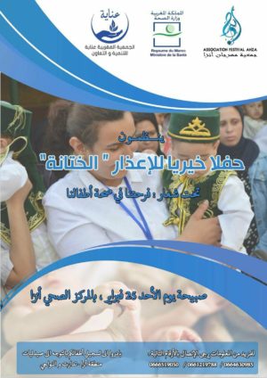 تنزيلا لبرنامجها السنوي ، تعتزم جمعية مهرجان أنزا و الجمعية المغربية عناية تنظيم عملية اعذار جماعي لفائدة الاطفال ” تحت شعار جميعا من أجل صحة أطفالنا” ويدخل هذا النشاط ضمن انشطة اجتماعية وانسانية اخرى كان اخرها حملة طبية و تحسيسية بداء السكري لفائدة طلبة المدرسة العتيقة بحي الحسنية أنزا أكادير .