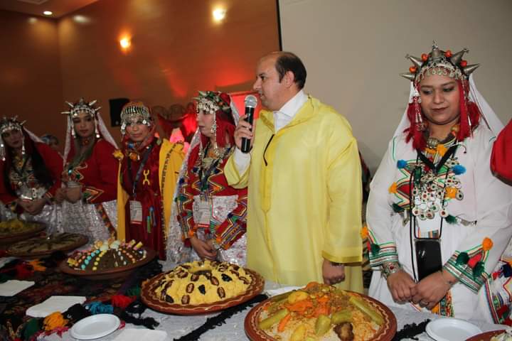 وتم أيضا تقديم الأطباق والأكلات الأمازيغية التي تطبخ بهذه المناسبة ودعوة الحاضرين لتذوقها، كما تم تقديم فقرة فنية وشعرية من أداء فرقة أيت علي برئاسة الرايس أزوليض والحسن بن واكريم .