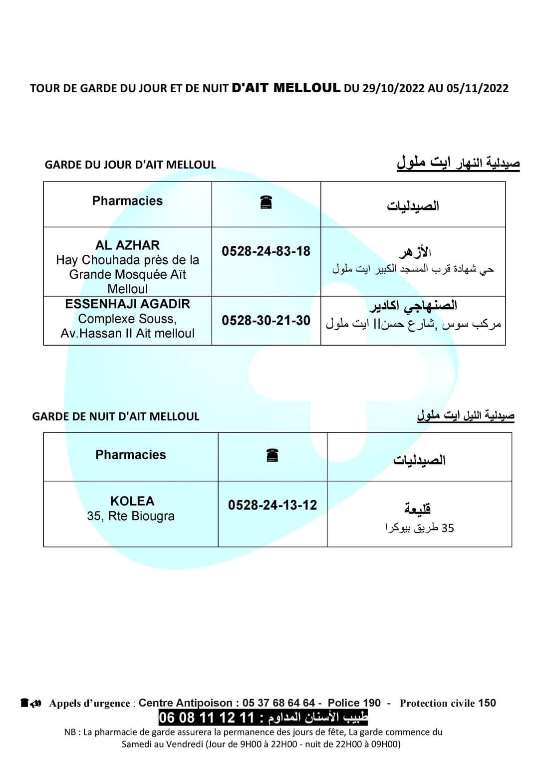 صيدليات الحراسة بأكادير الكبير لهذا الاسبوع