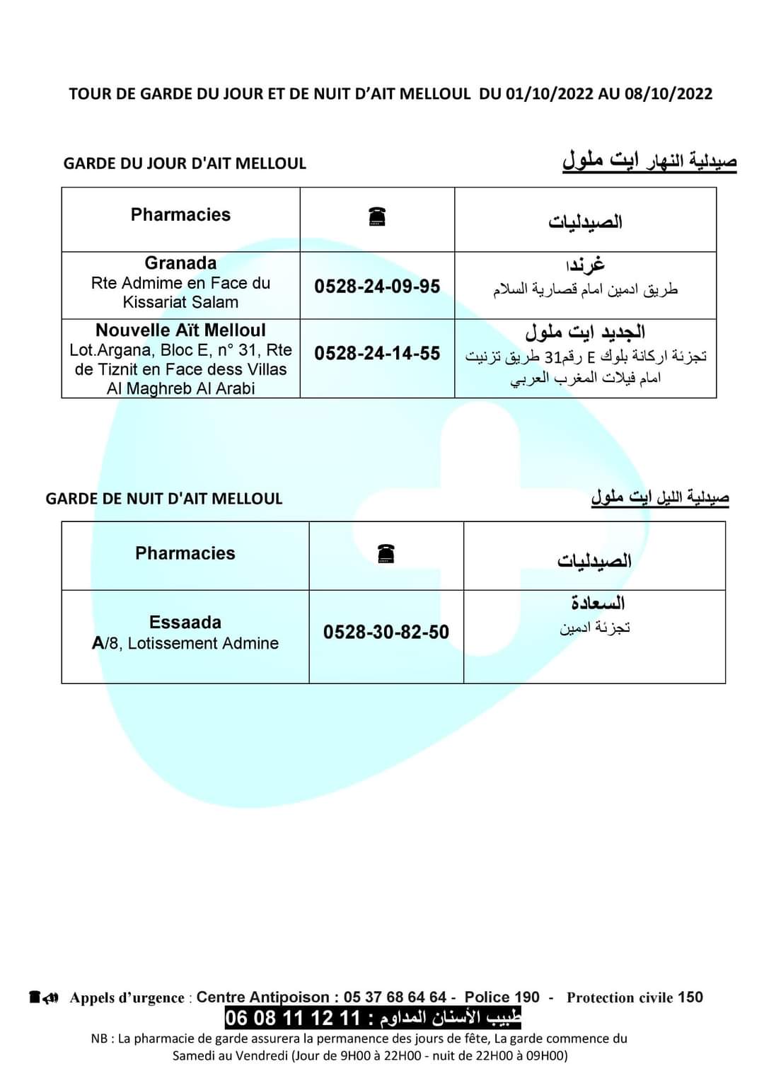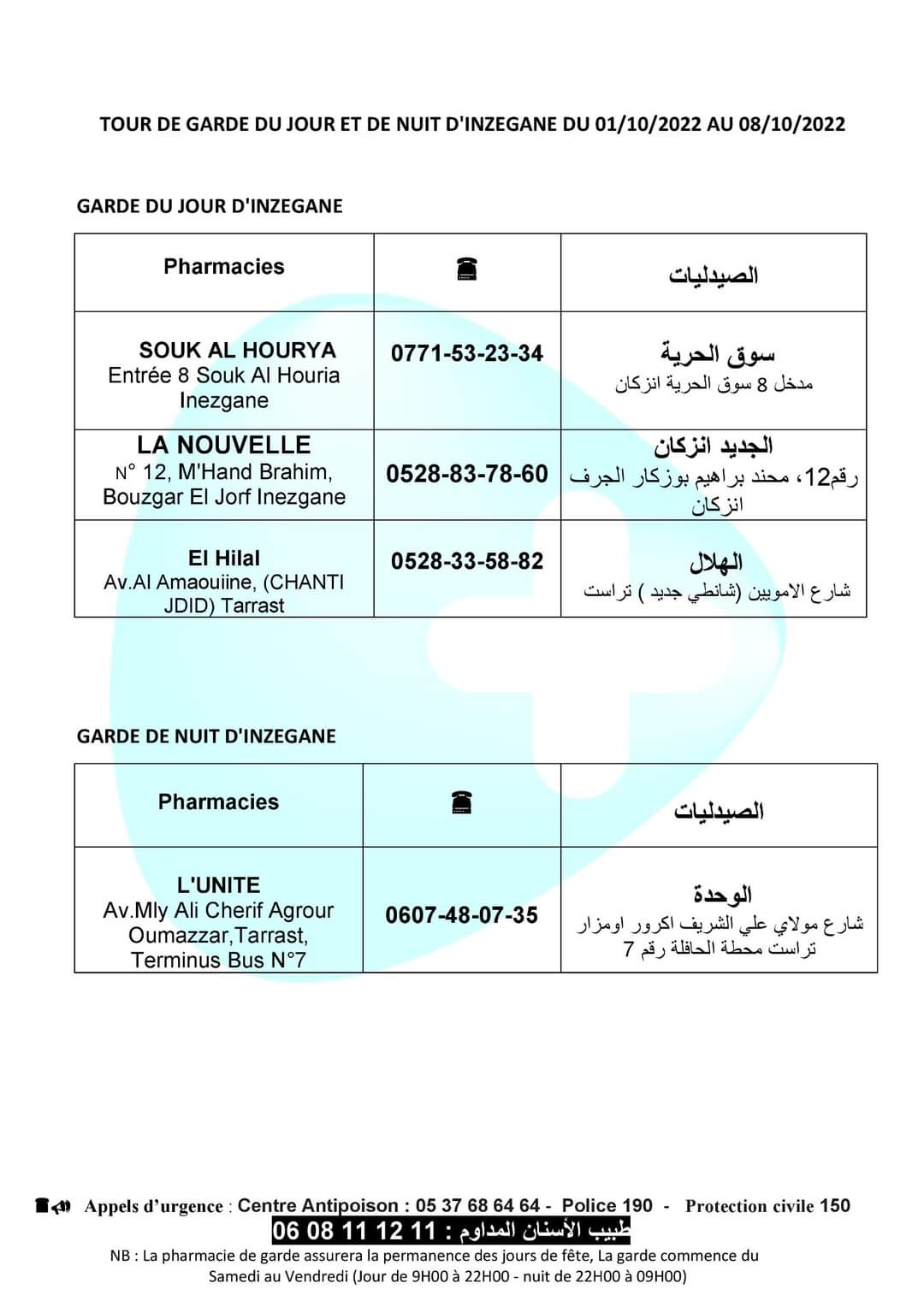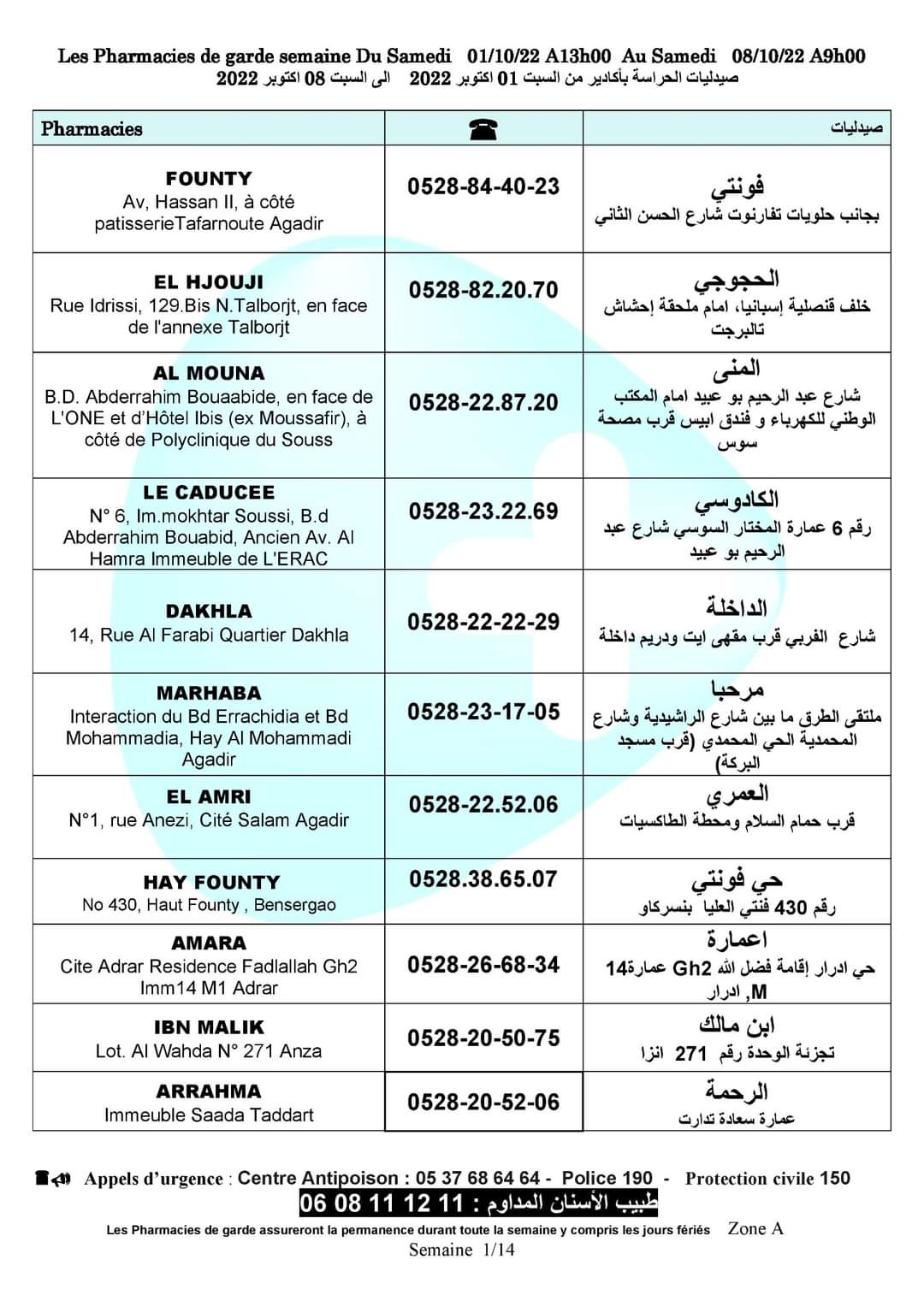 صيدليات الحراسة باكادير الكبير لهذا الاسبوع