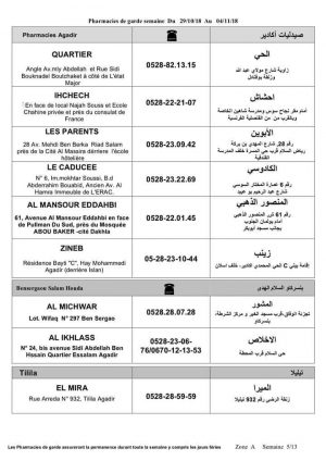 هذه هي صيدليات الحراسة للاسبوع من 28 اكتوبر الى 4 نونبر 2018: