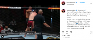 عثمان شقيق أبوبكر زعيتر ، نشر بلاغاً عبر إنستغرام بعنوان “أوقفوا الظلم”، قال فيه أن شقيقه “أبو” فاز بالنزال وهاجم فيه بشدة الحكم، الذي أدار نزال شقيقه في أمسية “UFC 260”.