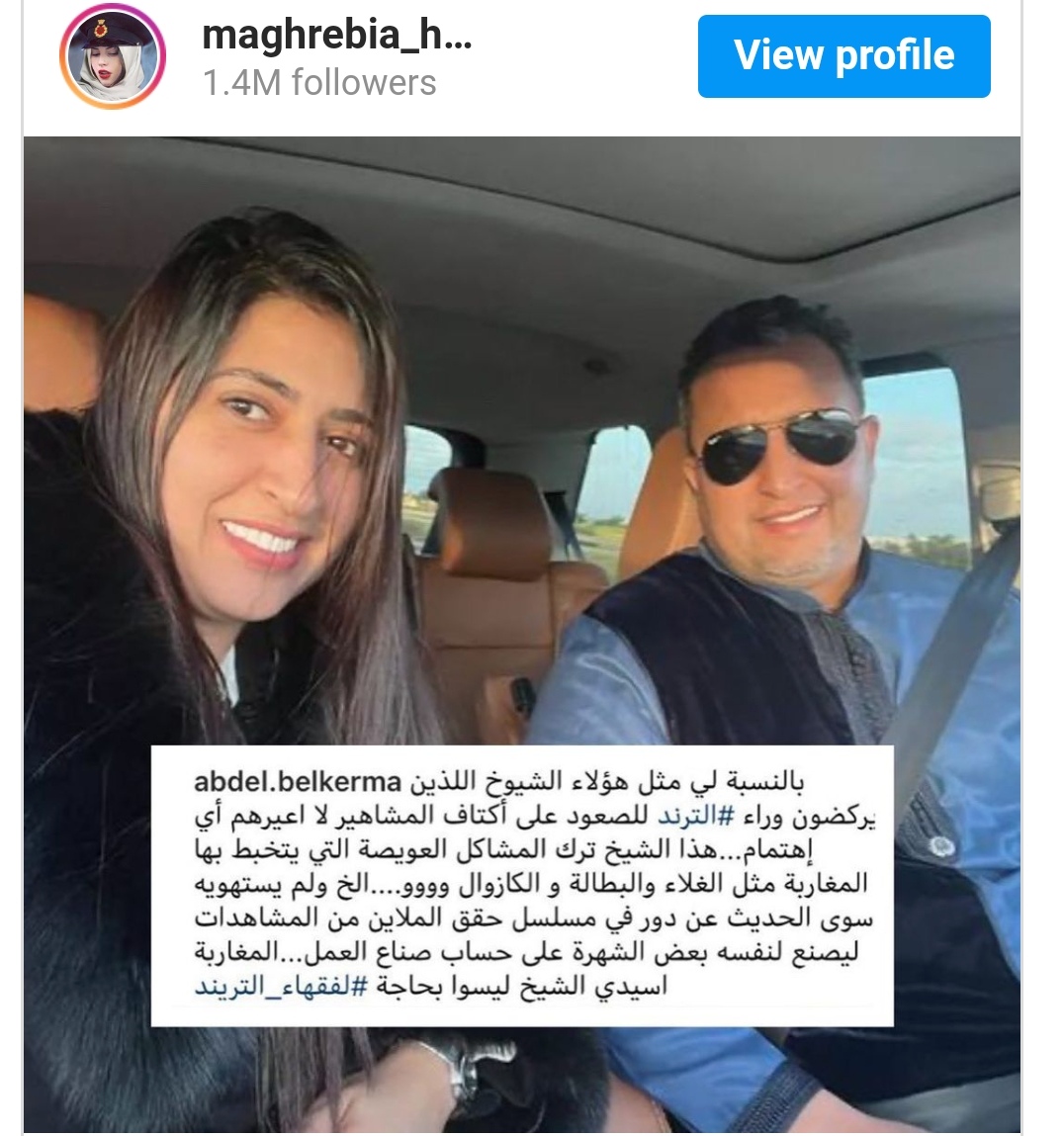 واختار زوج بوطازت، عبد القادر بلكرمة، حسابه على موقع تبادل الصور والفيديوهات أنستغرام، ليعقب على تصريح الداعية ياسين العمري، الذي أحدث جدلا واسعا عبر مواقع التواصل الإجتماعي، خلال الساعات الماضية وقسم نشطاء مواقع التواصل الإجتماعي بين مؤيد له ومعارض.