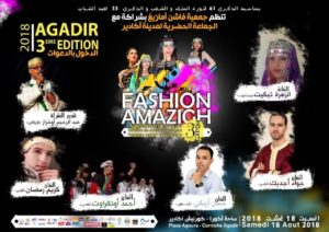 تقام بساحة لاكورا بكورنيش اكادير يوم السبت 18 غشت 2018 النسخة الثانية لفاشن امازيغ وهي من تنظيم جمعية فاشن امازيغ براكة مع الجماعة الترابية لاكاديربمناسبة الذكرى61 لثورة الملك والشعب والذكرى 55 لعيد الشباب ويشارك فيها فنانين شباب وهي من تقديم المتالق عبد الرحيم اخراز.