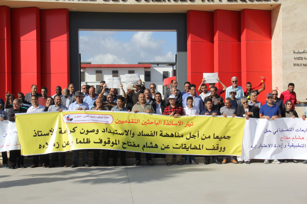 عرف أمام  المدرسة الوطنية للعلوم التطبيقية بأكادير يوم الجمعة 19 أكتوبر 2018  وقفة احتجاجية عبارة عن قافلة وطنية من مختلف الجامعات المغربية تحث شعار ” ضد الفساد والاستبداد، ومن أجل المشاركة في الوقفة الاحتجاجية لمساندة الأستاذ هشام مفتاح من المدرسة الوطنية للعلوم التطبيقية بأكادير الموقوف ظلما وتعسفا”