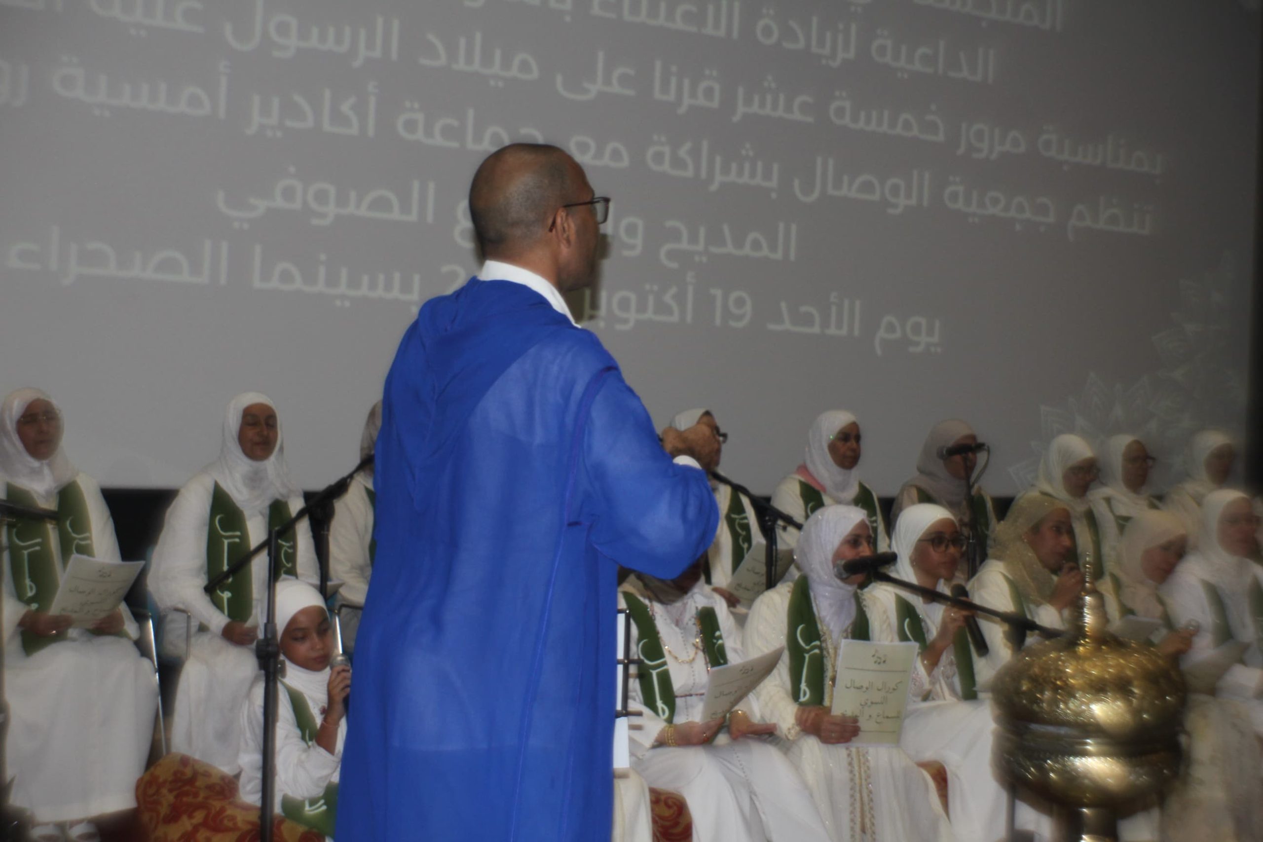 جسد  كورال الوصال للمديح و السماع  الرسالة الملكية السامية لصاحب الجلالة الملك محمد السادس و الموجهة إلى المجلس العلمي الأعلى بمناسبة مرور خمسة عشر قرنا على ميلاد الرسول عليه أفضل الصلاة و السلام ، و الداعية إلى الاحتفاء بالسيرة النبوية و التذكير بميلاد المصطفى عليه أفضل الصلاة و السلام و ذلك يوم الأحد 19 أكتوبر 2025 بسينما الصحراء بمدينة أكادير  في أمسية روحية إنشادية متميزة.