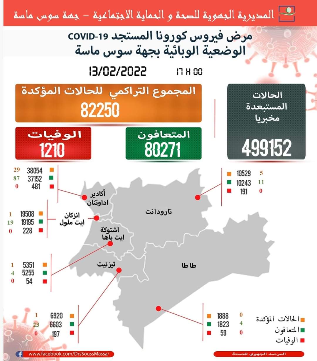 كوفيد سوس ماسة : تفاصيل الاصابات الجديدة والوفيات خلال 24 ساعة الماضية