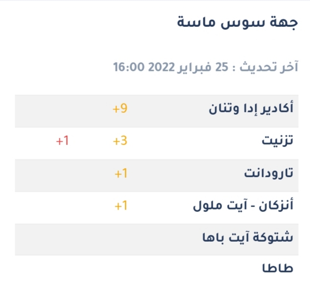 كوفيد سوس ماسة : تفاصيل الاصابات الجديدة والوفيات خلال 24 ساعة الماضية