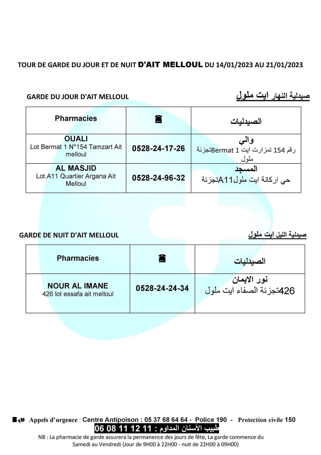 لائحة صيدليات الحراسة باكادير الكبير