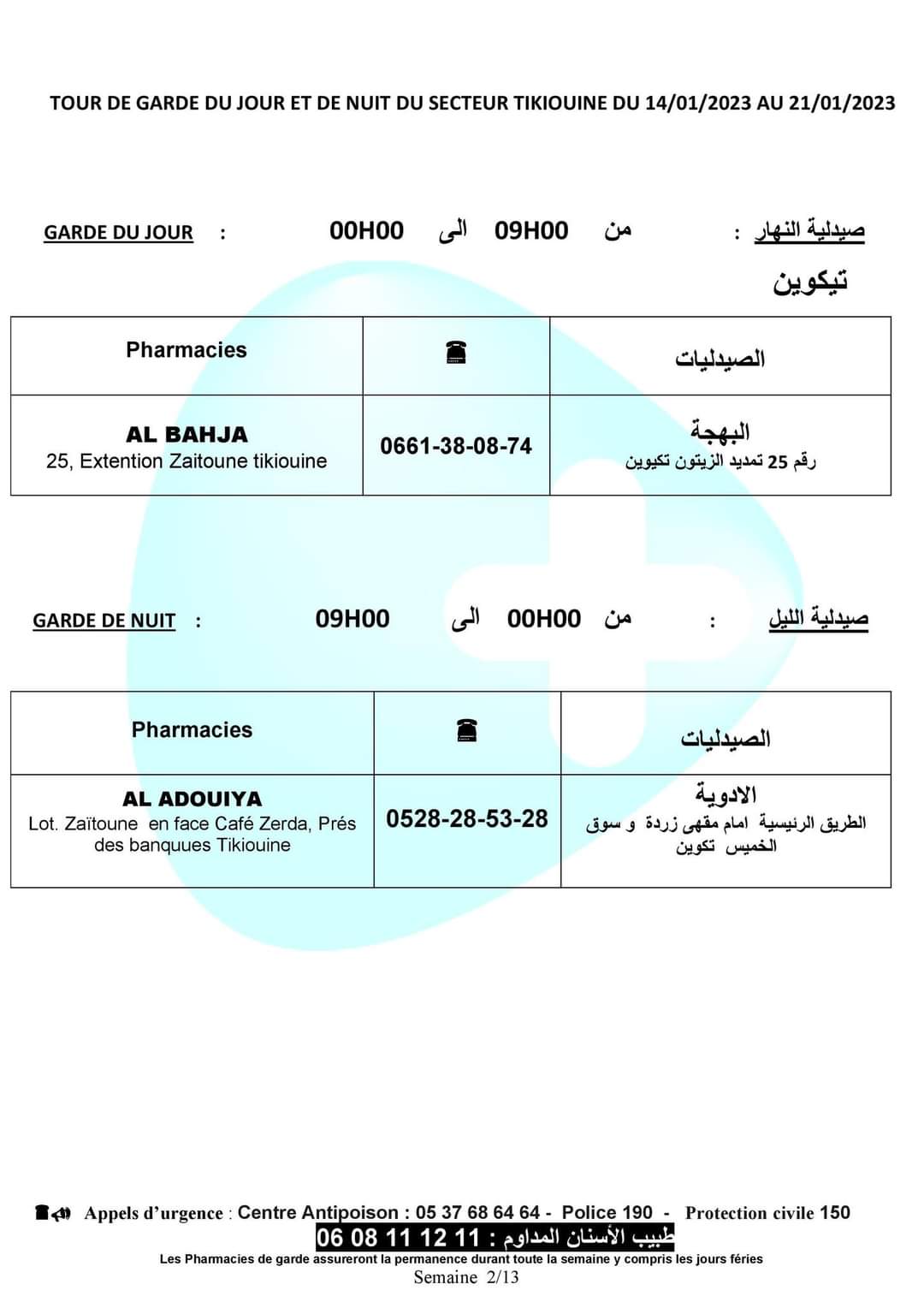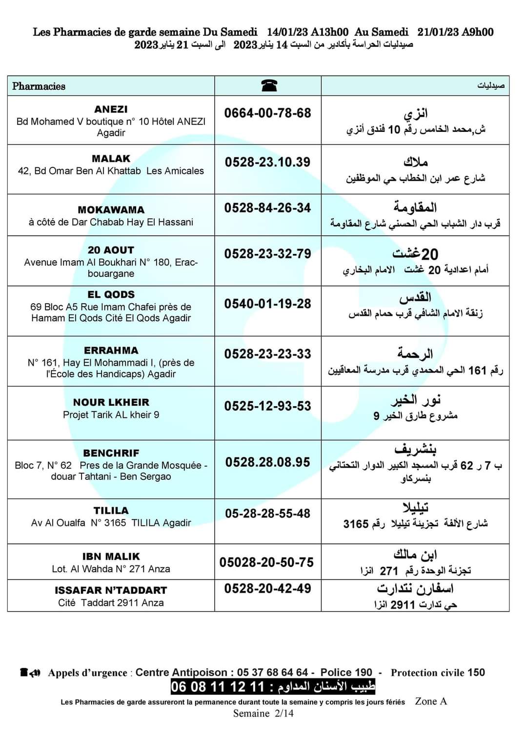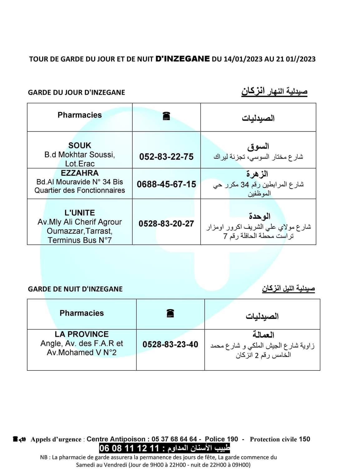 لائحة صيدليات الحراسة باكادير الكبير