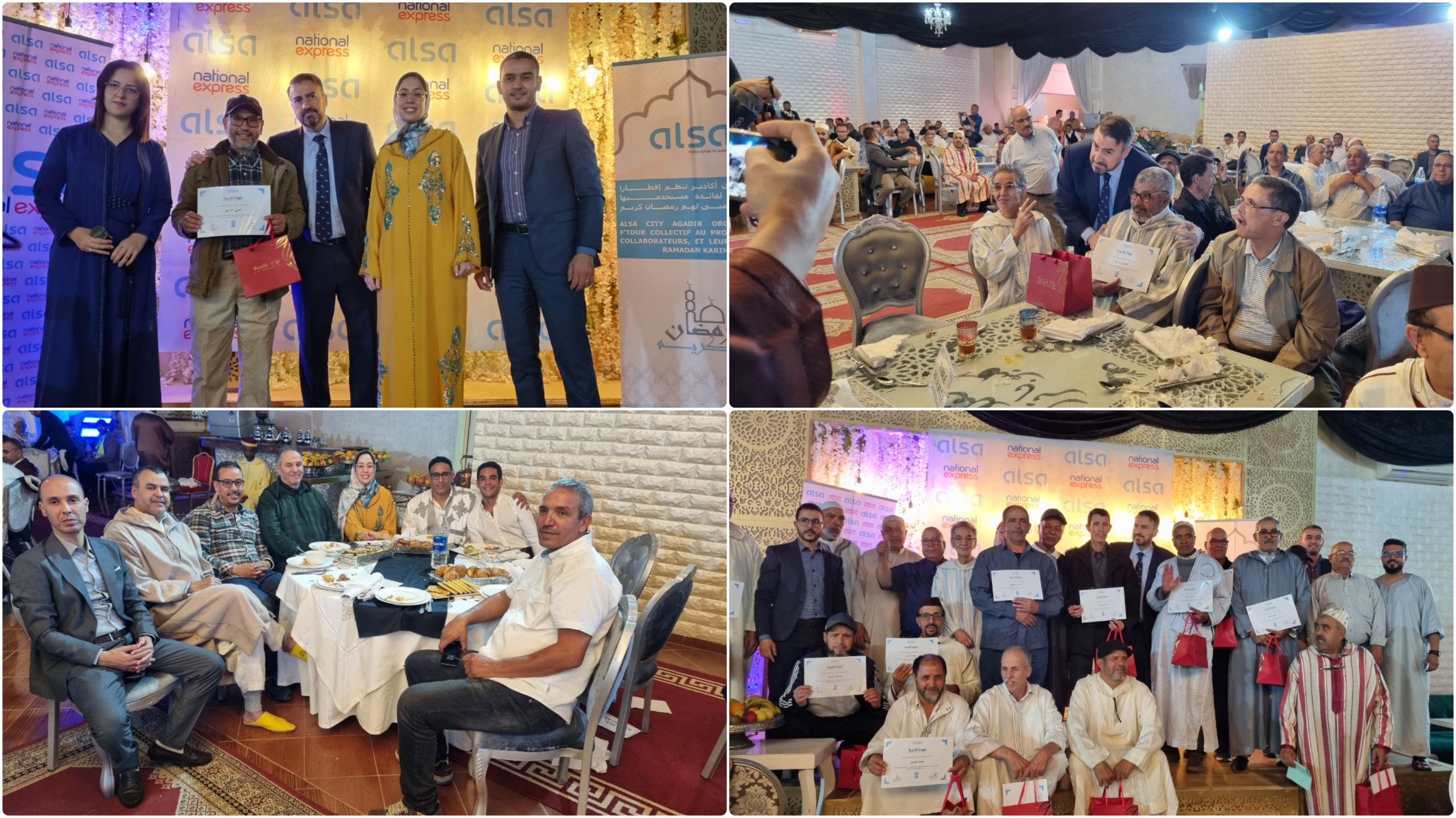 في إطار انشطتها الاجتماعية،نظمت شركة ألزا سيتي أكادير مساء يوم الاربعاء 20 أبريل الجاري إفطارا وعشاء جماعيين لكافة مستخدميها حيث حضر هذه الأمسية ما يزيد عن 400 مستخدم إلى جانب ضيوف من بينهم رؤساء جماعة القليعة و الدشيرة الجهادية ورئيس الغرفة الفلاحية ، ومسؤولين من الشركة بمراكش.