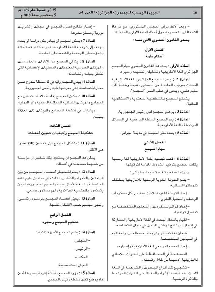 وهنا نسخة من الجريدة الرسمية للجزائر التي نشرت قانون احداث أكاديمية اللغة الأمازيغية