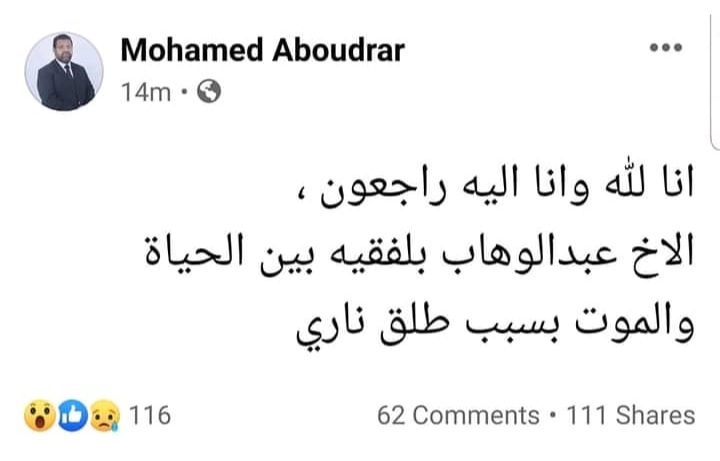 كتب محمد أبودرار المرشح لرئاسة جهة كلميم واد نون قبل قليل “انا لله وانا اليه راجعون ،