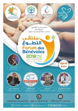 تعتزم “مبادرة قافلتي” تنظيم “ملتقى التطوع” في دورته الأولى لسنة 2018، بشراكة مع “مجلس عمالة إنزكان أيت ملول”، وذلك  يوم السبت 07 أبريل 2018، بداية من الساعة 15H00 بعد الزوال بقاعة الإجتماعات بجماعة إنزكان.