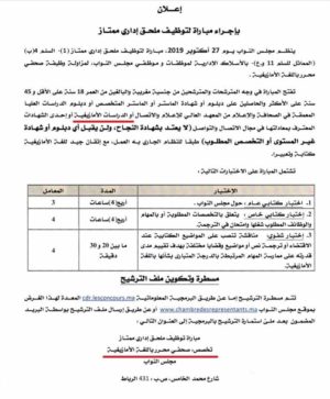 مجلس النواب ينظم مباراة لتوظيف ملحق إداري ممتاز