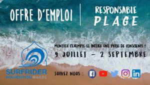 تعتزم منظمة سورفريدير المغرب بشراكة مع كوكاكولا تنظيم الدورة السادسة لعملية “أحب شاطئي” وتهدف العملية لتجهيز الشواطئ بلوحات إخبارية و صناديق للقمامة و توعية المصطافين حول خطورة النفايات على الشواطئ. في هذا السياق، تبحث المنظمة عن مسؤولي الشواطئ . وصف العرض: إعطاء المثل الأعلى وإدراك مفهوم التوعية ! كممثل لقيم المسؤولية البيئية لسورفريدير، سوف تكون مسؤول عن الحفاظ على نظافة الشاطئ من خلال جمع النفايات على الشاطئ وكذلك إزالة أكياس القمامة. مهمتك الأساسية هي حمل رسالة نبيلة هدفها زيادة الوعي المصطافين وتنشيط الألعاب الترفيهية للأطفال. الإستفادة من عملية تدريب مدتها 6 أيام لفهم كيفية العمل. مكان العمل : لك حق إلاختيار من بين هذه الشواطئ بشرط إلتزام السكن قرب الشاطئ : – شاطئ ماداربا (la madrague) – شاطئ كلم 25 – شاطئ كلم 29 — شاطئ إيمي ودار – شاطئ أغروض 1 – شاطئ أغروض 2 مدة العمل: إبتداء ا من 09 يوليوز إلى غاية 2 شتنبر. عطلة العيد (من 20 غشت إلى 25 غشت) ساعات العمل: 8 ساعات عمل في اليوم هي كالتالي : الفترة الصباحية : من 09:00 حتى 13:00 الفترة المسائية : من 14:00 حتى 18:00 الراتب : 90 درهم في اليوم الملف الشخصي المطلوب : ينبغي أن يكون لدى المرشح روح العمل في المجموعة و حس التواصل والتنظيم، أن يتحدث لغتين على الأقل (العربية والفرنسية) ولديه معلومات ومفاهيم عن البيئة الساحلية. من أجل الترشح، يرجى إرسال سيرة ذاتية و طلب عمل خطي مع نسخة للبطاقة الوطنية عن طريق البريد الإلكتروني الى :