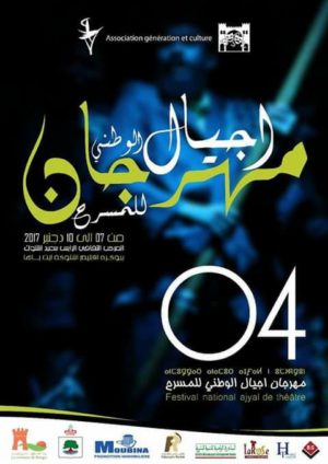 أعلنت إدارة مهرجان ” أجيال الوطني للمسرح ” ، عن الموعد الرسمي المقرر لانطلاق فعاليات الدورة الرابعة للمهرجان ، والذي سيقام حفل افتتاحه يوم الخميس 07 دجنبر 2017 ، بمدينة بيوكرى ، حاضرة إقليم اشتوكة أيت باها.