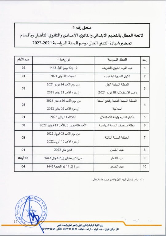 وقد نشرت وزارة التربية الوطنية لائحة العطل الجديدة 2021-2022 وهي لائحة رسمية.
