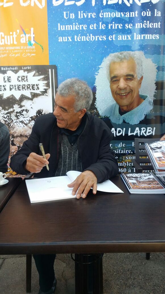 ( إنني عدت من الموت لأحيا… )…لو جاءت هذا الجملة الشعرية على لسان طفل اسمه العربي سنة 1960 لتحولت إلى جملة حقيقية مطلقة …إذ ولمدة يومين وهو يقاوم الموت تحت الأنقاض هنا بتلبرجت إلى درجة أن الاحجارتعاطفت معه و انخرطت في الصراخ …لذلك كان الأمر طبيعيا أن يكون الطفل الذي كبر تحت اسم الدكتور /الفنان العربي باباهادي. .إن يكون وفيا لتلك الاحجار و يعنون كتابه ( صرخة حجر ) الذي برمج حفل توقيعه ضمن فعاليات مهرجان تلبرجت الدولي للقيثارة بمقر جمعية ايزوران المشرفة تنظيما وتنشيطا وتواصلا مع الحضور النوعي المتفاعل بشكل إيجابي مع فقرات الكتاب من جنس السيرة الذاتية بأسلوب الحكي المصور بنفس تراجيدي ساخر