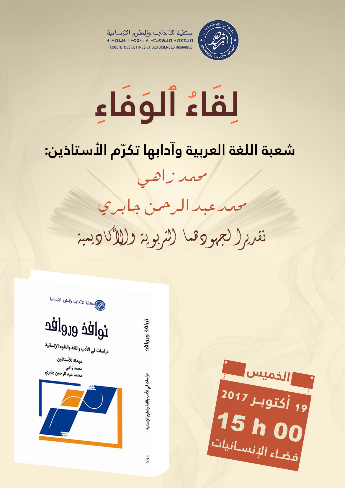 حفل تكريم الأستاذين محمد زاهي ومحمد عبد الرحمن جابري بكلية الآداب بأكادير