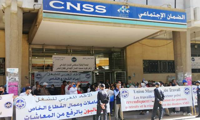 نظم الاتحاد المغربي للشغل أمام المقر الرئيسي للصندوق الوطني للضمان الاجتماعي بشارع محمد الخامس بالدار البيضاء، وقفة احتجاجية ضد الهجوم الممنهج و غير المسبوق من طرف الحكومة على أهم المكتسبات التاريخية للطبقة العاملة المغربية؛ و ضد قرار الحكومة بتفويت مصحات الضمان الاجتماعي للقطاع الخاص و الذي يعتبر تطاولا على مكتسبات الطبقة العاملة التي حققتها بتضحياتها المادية و المعنوية؛ و ضد تجميد الحكومة للزيادة في المعاشات التي قررها المجلس الإداري للصندوق الوطني للضمان الاجتماعي؛ و عدم صرف الزيادة العامة في الأجر حسب مخرجات الحوار الاجتماعي الوطني بتاريخ 25 أبريل 2019، وذلك بعد استيفاء الإجراءات الضرورية مع وزارة المالية، و عدم تسوية الوضعية المهنية للممرضين المتعاقدين العاملين بمصحات الضمان الاجتماعي بما يضمن استقرارهم المهني والاجتماعي ويكفل لهم التغطية الاجتماعية و الصحية.