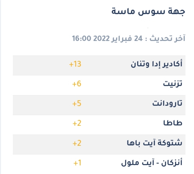 كوفيد سوس ماسة : تفاصيل الاصابات الجديدة خلال 24 ساعة الماضية