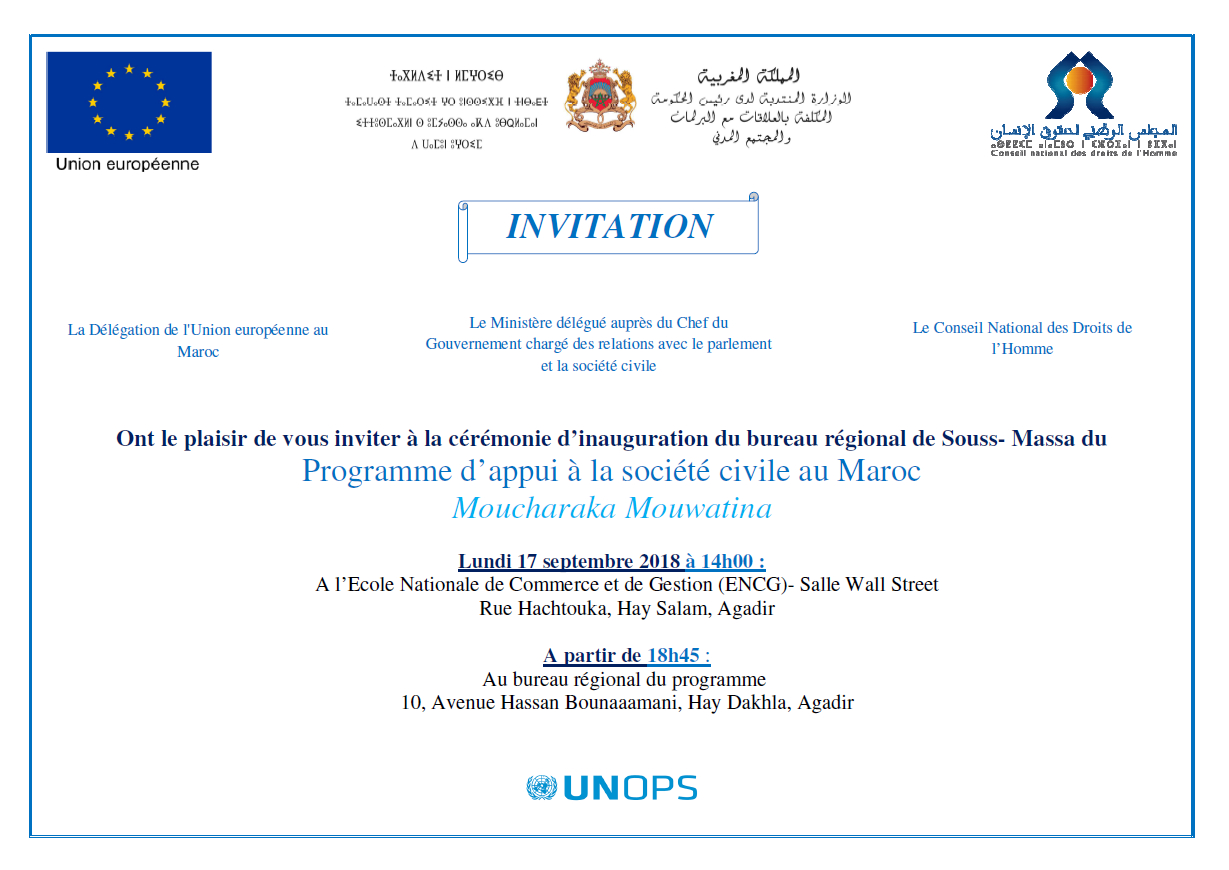 دعوة صحافة أكادير‎لحضور افتتاح مكتب برنامج دعم المجتمع المدني بالمغرب + البرنامج