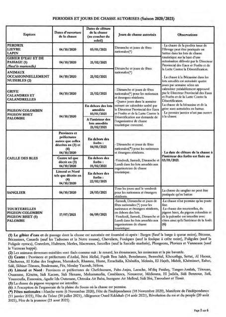 Selon l’arrêté du ministre de l’Agriculture , de la pêche maritime , du développement rural et des eaux et forêts n° 2992 en date du 20 septembre 2020 , réglementant l’ouverture et la clôture de la chasse , les jours de chasse et le nombre de gibiers autorisés pour la saison 2020/2021,la saison de chasse sera ouverte demain,dimanche 4 octobre 2020 pour les principales espèces de gibier .