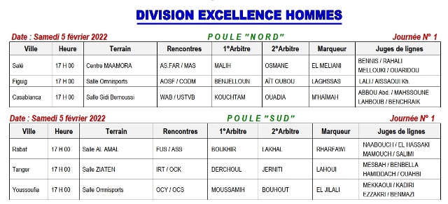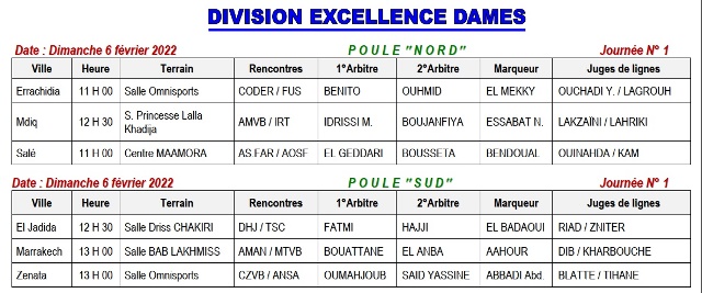 Le championnat national de volley-ball de la division excellence dames et hommes démarre les samedi 5 et dimanche et 6 février 2022.Voici le programme de la première journée :