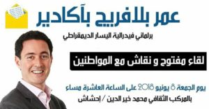 يحل البرلماني عمر بلافريج عن فيدرالية اليسار الديمقراطي بمدينة اكادير بوم الجمعة 8 يونيو 2018 بالمركب الثقافي محمد خير الدين باحشاش وكذلك ابتداء من الساعة العاشرة ليلا
